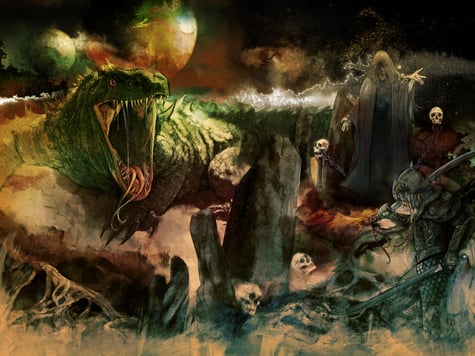 The swirl grew stronger, taking on a shape. A whirlpool in the sky. Edges of the cloud spun outward with tendrils of mist, which likewise grew deeper and darker, morphed into pincers and tentacles, flailing and reaching from a great maw of shadow and flame. The smoldering center belched smog and tongues of green-violet fire. Frost formed on the fingers of the Priestess. It crept over everything.